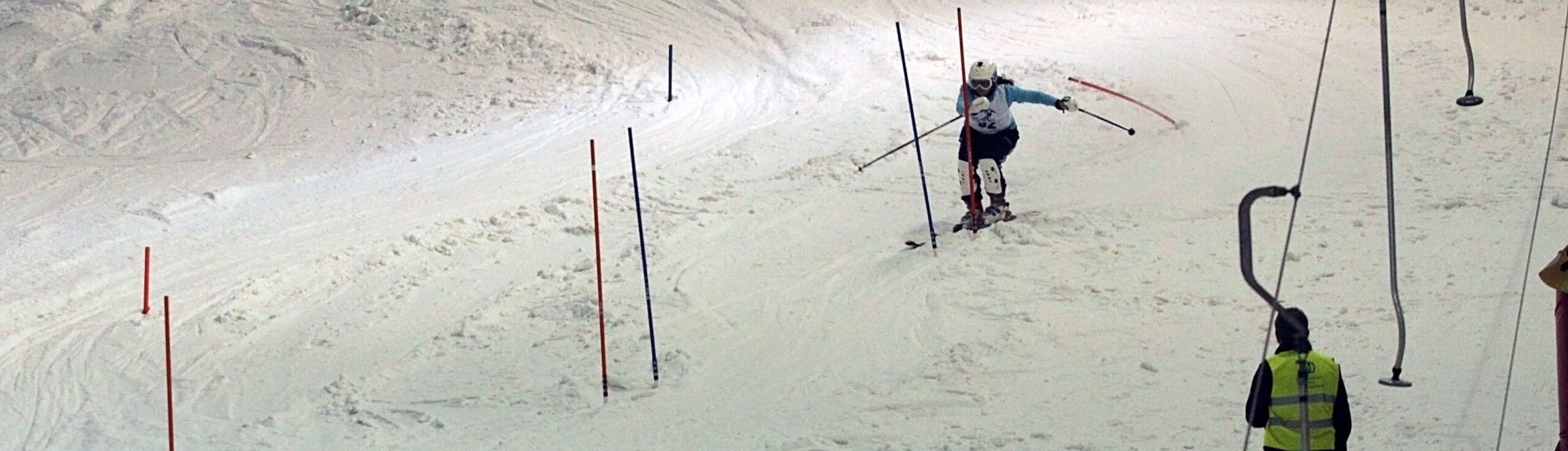 Die Organisatoren hatten 3 Strecken aufgebaut, eine mit Stubbies, das sind kniehohe, gummiartige Tore, die sich beim Aufprall biegen, für die Junioren. Dann 2 weitere Strecken mit Toren in voller Größe für die älteren Rennfahrer.